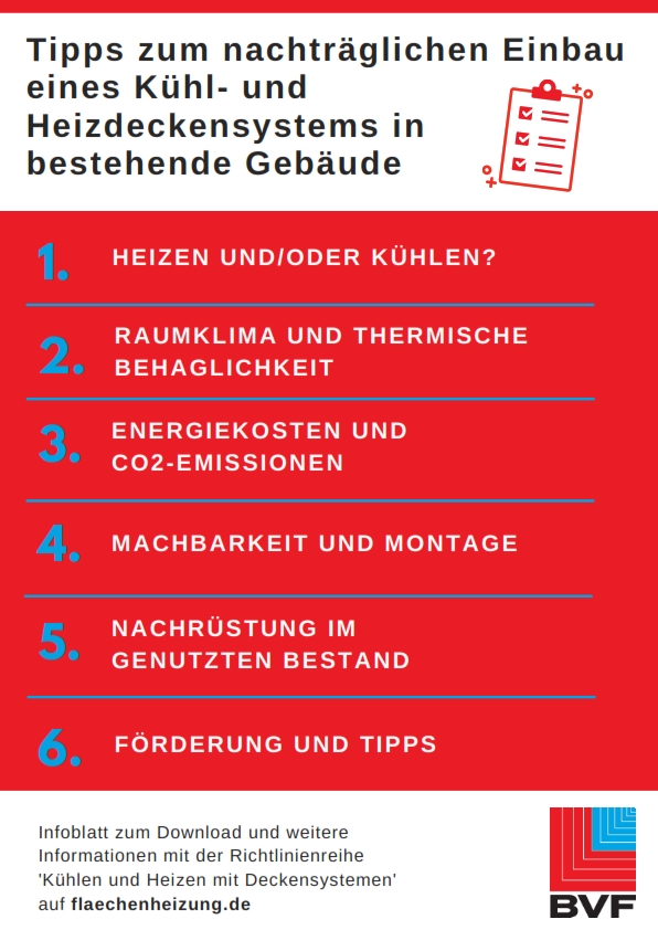Grafik: Der BVF e.V. gibt kompakte Tipps zum nachträglichen Einbau eines Kühl- und Heizdeckensystems