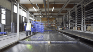 Einsparung von Fachkräften auf der Baustelle selbst. Die thermisch aktivierbaren Filigrandecken kommen montagefertig dort an und es müssen keine Kapillarrohrregister mehr vor Ort verlegt werden. Dadurch beschleunigt sich die Zusammenarbeit und Abstimmung mit weiteren Gewerken und eine einfache Installation der Zuleitungen bei jeder Witterung ist möglich. Durch diese industrielle Vorproduktion kann ein Drittel der Bauzeit auf der Baustelle eingespart werden.