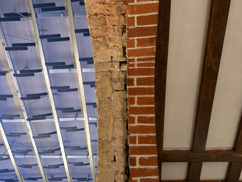 In einigen Räumen des alten Gebäudes wird das Kapillarrohr zudem nicht nur in der Decke, sondern auch als Wand- bzw. Fußbodenheizung installiert, um zu gewährleisten, dass die historische Deckenkonstruktion, wie beispielsweise in der ehemaligen Eingangshalle, erhalten bleiben kann. Alte Schornsteinschächte wurden umfunktioniert um Platz für die Steigstränge zu schaffen. So konnte Platz gespart und der Arbeitsaufwand sowie Materialeinsatz reduziert werden.